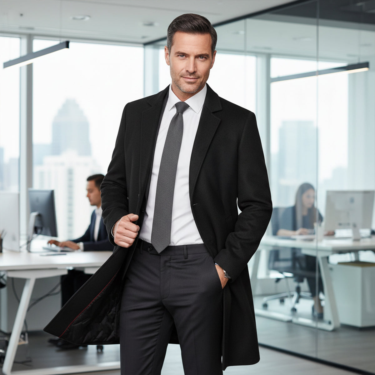 Forget the stress of coordinating outfits—this versatile overcoat layers effortlessly over shirts, knits, or suits, ensuring you look polished and put together every time.