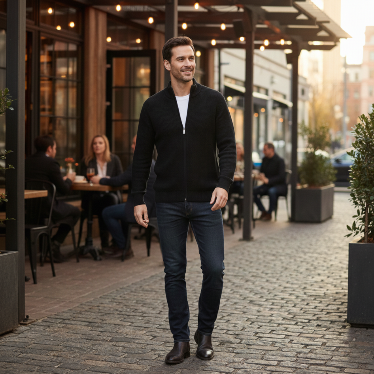 Look sharp without the effort. The Lothian Knit Zip Cardigan Sweater, crafted with a refined ribbed texture and smart stand collar, delivers a balance of sleek style and all-day comfort. Designed for men who want a polished appearance without overthinking, this cardigan is the perfect blend of casual ease and modern sophistication.